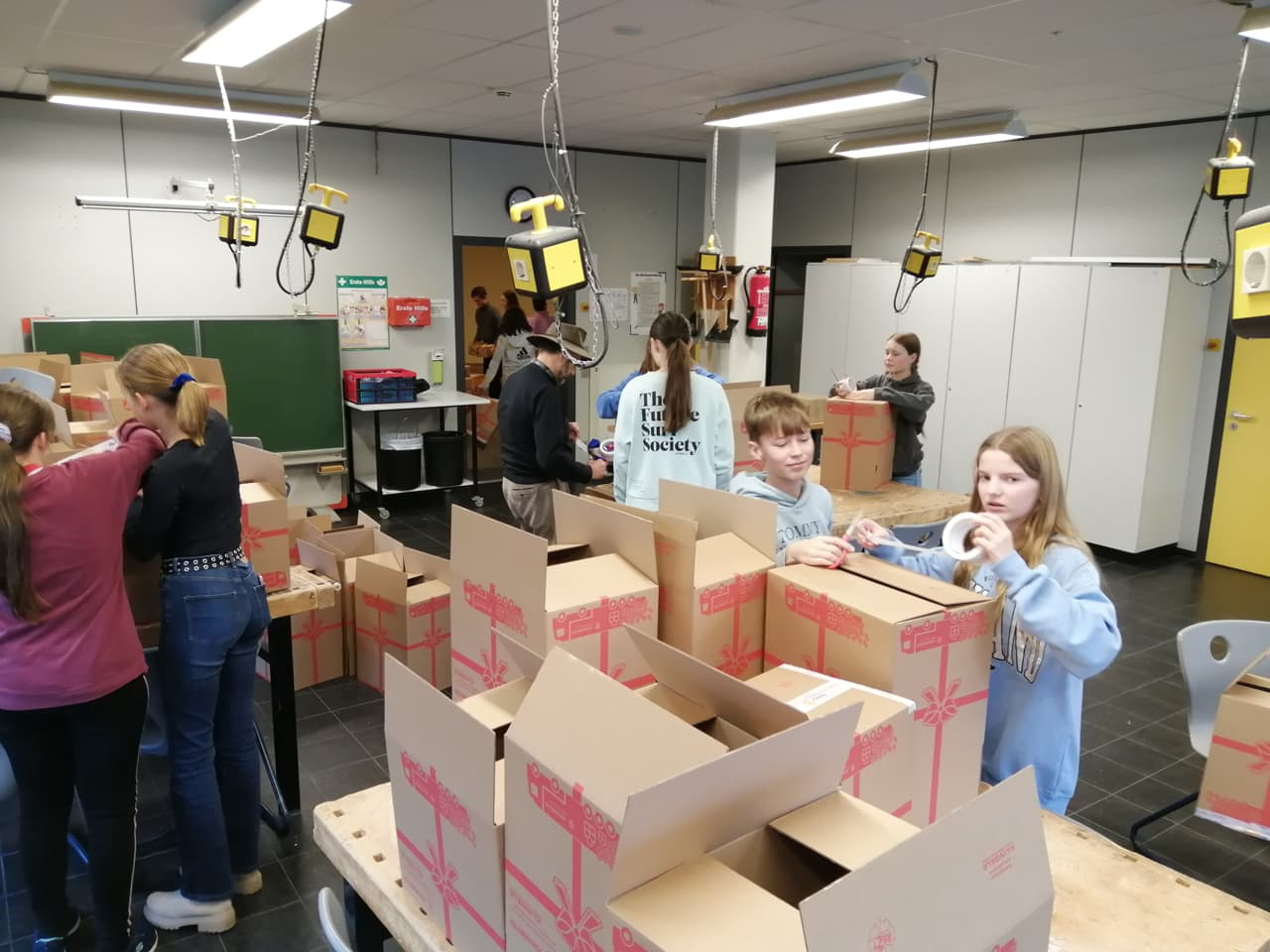 Mit tatkräftiger Unterstützung einer Klasse des Alstergymnasiums sowie der Schülervertretung hat der Rotary Club Henstedt-Ulzburg auch in diesem Jahr wieder fleißig Pakete für die Aktion Weihnachtstrucker gepackt. Am 24.11.2023 haben knapp 30 Schüler, Lehrer und Rotarier zusammen 150 Pakete gefaltet und mit Lebensmitteln gefüllt. Zusätzlich kamen fünf selbst gepackte Pakete hinzu. Ein herzliches Danke geht wieder an die großzügige Spende von Edeka Oertwig, ohne den die Aktion in diesem Jahr nicht in diesem Umfang hätte stattfinden können. Die Pakete konnten in kürzester Zeit zur zentralen Sammelstelle gebracht werden. Die Freude und das Engagement der Helfenden waren so groß, dass bereits Pläne für eine Wiederholung der Aktion im nächsten Jahr geschmiedet wurden. Wir freuen uns also schon auf das nächste Jahr!